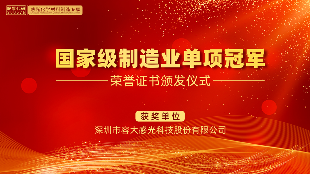 2022年11月15日,深圳市工業(yè)和信息化局叢培玉、深圳工業(yè)總會執(zhí)行會長吳麗等一行到公司總部調(diào)研,并為公司頒發(fā)“國家級制造業(yè)單項冠軍產(chǎn)品”榮譽證書。公司董事會秘書蔡啟上熱情接待叢處、吳麗執(zhí)行會長等一行,同時參觀了公司PCB光刻膠事業(yè)部及顯示、半導(dǎo)體光刻膠事業(yè)部研發(fā)中心。叢處長、吳會長對容大感光長期專注光刻膠系列產(chǎn)品的研發(fā)及所取得的成績予以充分的肯定,并鼓勵公司繼續(xù)努力、克服種種困難,幫助客戶持續(xù)不斷提高產(chǎn)品質(zhì)量、控制生產(chǎn)成本,為中國光刻膠事業(yè)的發(fā)展做出新的貢獻。