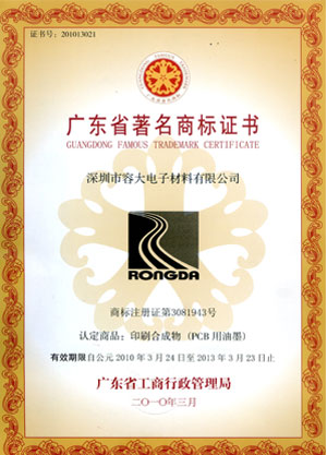 2014年 公司更名為“深圳市容大感光科技股份有限公司” 獲得榮譽:深圳市成長型中小工業(yè)企業(yè)500強 2012年度寶安區(qū)民營百強企業(yè) 廣東省著名商標 寶安區(qū)區(qū)長質(zhì)量獎